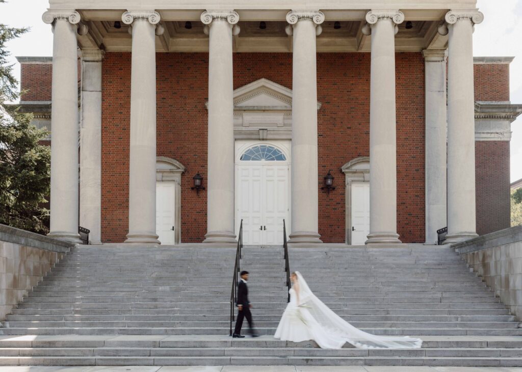 Their ceremony took place at Hendricks Chapel at Syracuse University, a location that carries deep meaning for Josh’s family. His dad is a chaplain there, making their ceremony here feel incredibly personal and heartfelt. We wandered the Syracuse University grounds taking portraits after their ceremony.
